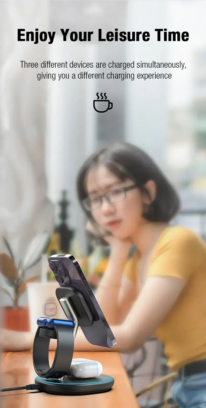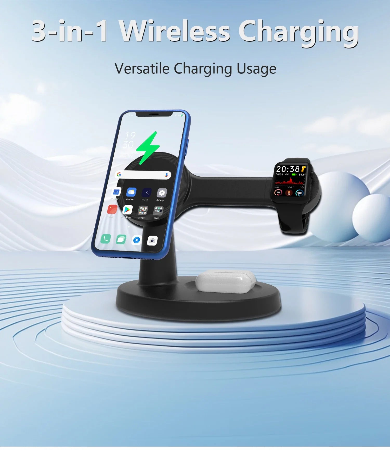 3 In 1 Magnetic Wireless Charger Stand For Magsafe iPhone 16 15 14 13 Pro Max Apple Watch 9 8 AirPods Pro Fast Charging Station