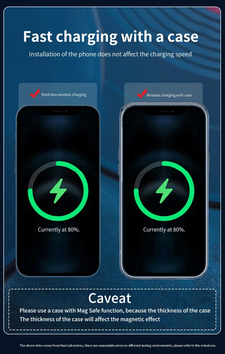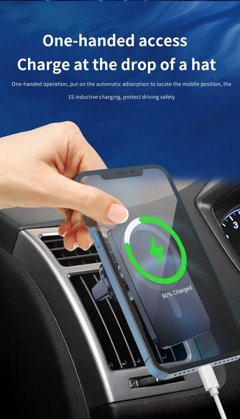 Strong Magnetic: The powerful magnetic fixes the phone without sliding, allowing the phone to be completely focused on the charging plate to speed up charging.