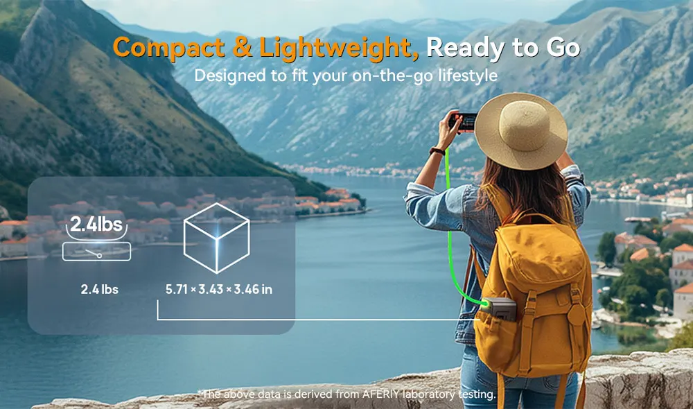The AFERIY portable battery has a capacity of 99.2 Wh (31,000 mAh) that meets the standard carry-on for many airlines. You can safely carry it on a plane during a business trip or travel.