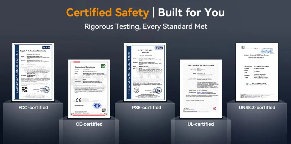 Equipped with 6 safety features, including short circuit, over-current, over-voltage, over-discharge, and temperature protection. In addition, it uses fire-resistant and shock-resistant material so you can use it with confidence even in the event of an emergency.