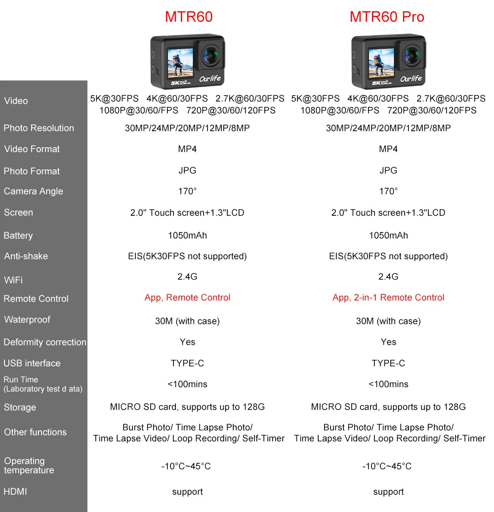 ●Video resolution:5K@30fps;4K@60fps/30fps;2.7K@60fps/30fps;1080P@60fps/30fps;720P@/120fps/60fps/30fps