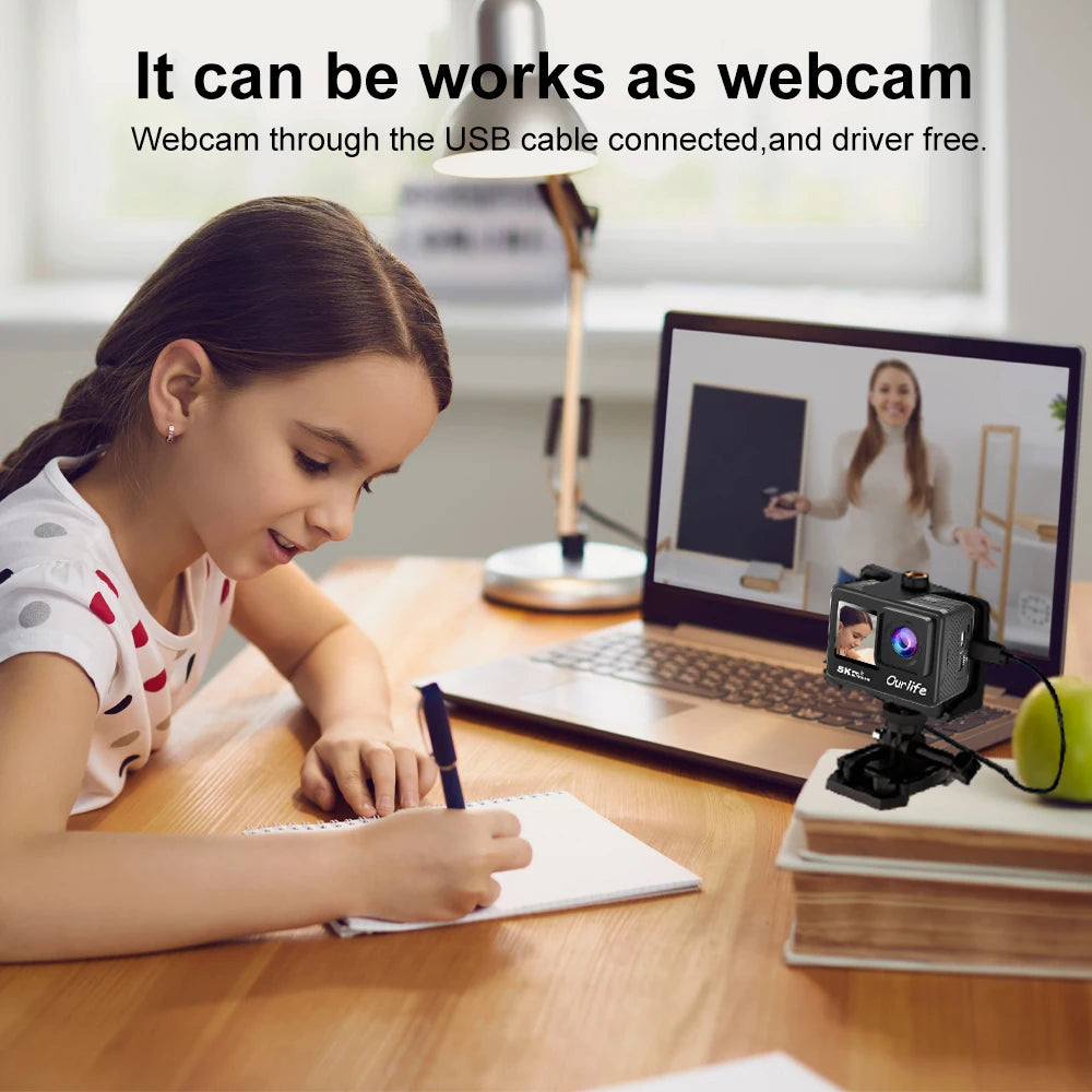 Ourlife 5K30FPS Action Camera 2.0'' Touch LCD 170° DVR 30M Waterproof Remote Control 5X Zoom Helmet WiFi 4K60FPS Sport Camera