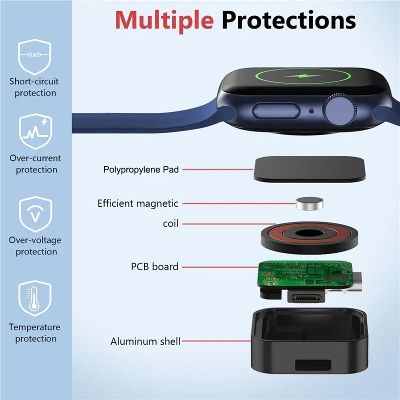 Carregador Magnético Portátil 2 em 1 para Apple Watch – Compacto, Sem Fios e Seguro