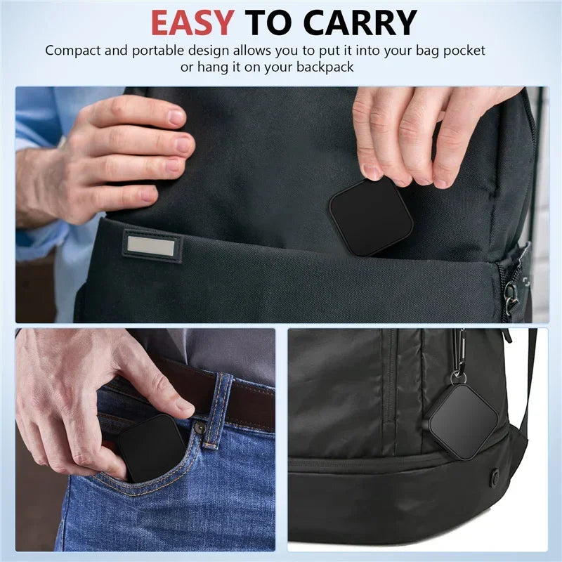 Sem cabos extras. Leve, pequeno e com mosquetão metálico removível. Cabe no bolso ou na bolsa, ideal para viagens e uso diário.